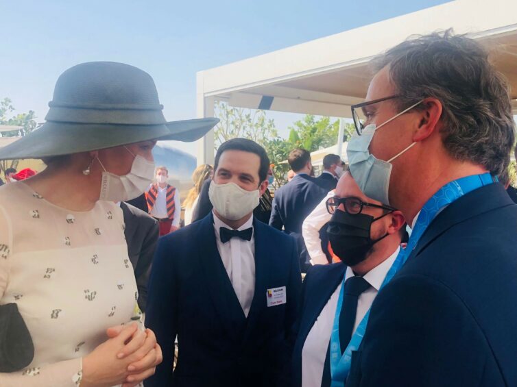C’est lors de la journée belge à l’exposition universelle à Dubai que le Roi Philippe et la Reine Mathilde ont visité le pavillon belge “the Green Arch”, c’était l’occasion de féliciter les architectes !