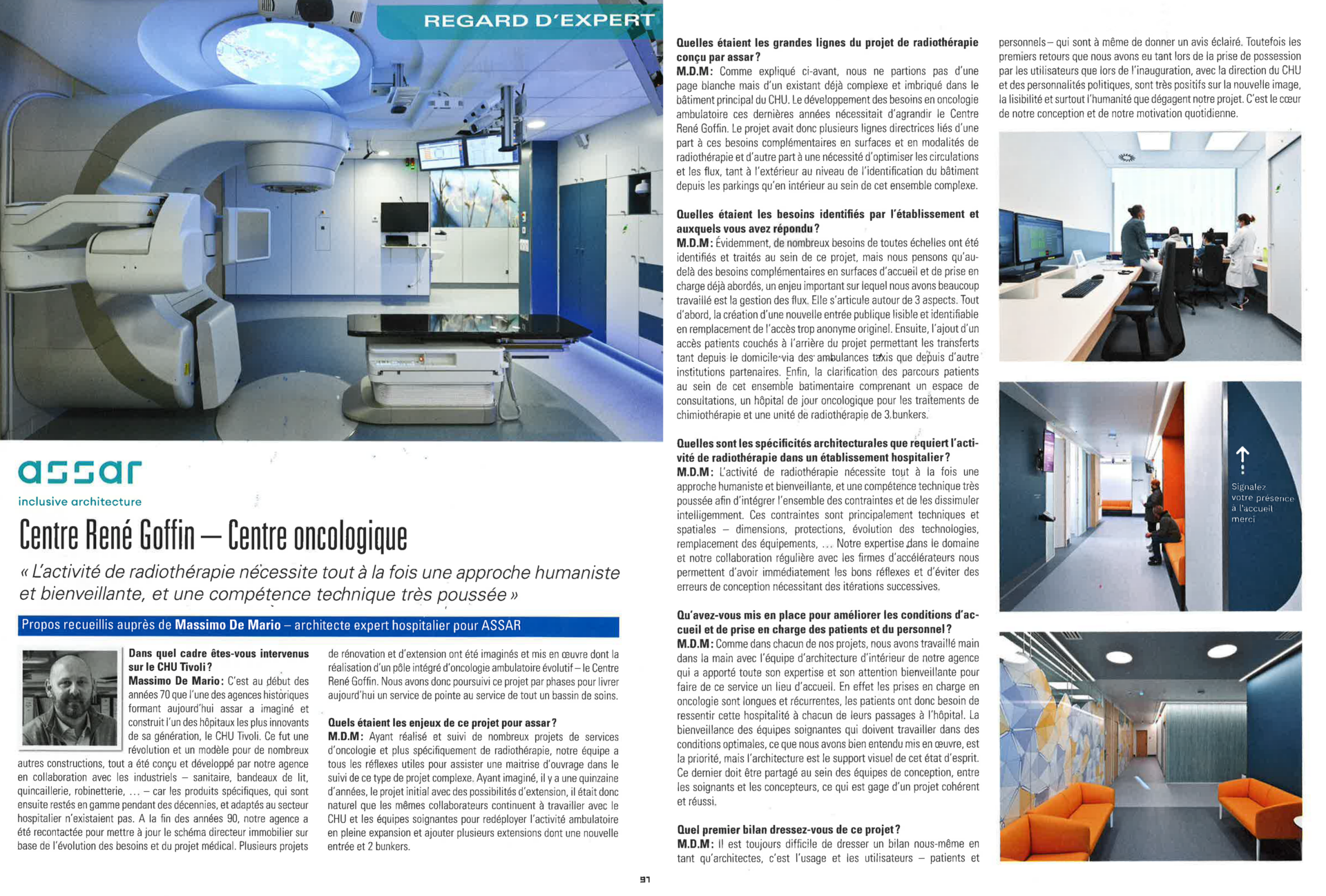 L’expertise d’assar s’illustre dans la rénovation & l’expansion du Centre René Goffin, dédié à la radiothérapie. Confrontés à des contraintes techniques & spatiales, notre équipe, forte d’une vision initiée il y a quinze ans, collabore étroitement avec le CHU pour redéployer l’activité ambulatoire en pleine croissance. En surmontant les défis liés à un environnement complexe déjà existant, nous ajoutons des extensions stratégiques, dont une nouvelle entrée & deux bunkers, répondant ainsi aux exigences croissantes de l’oncologie ambulatoire.