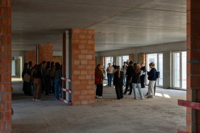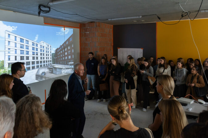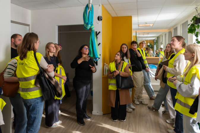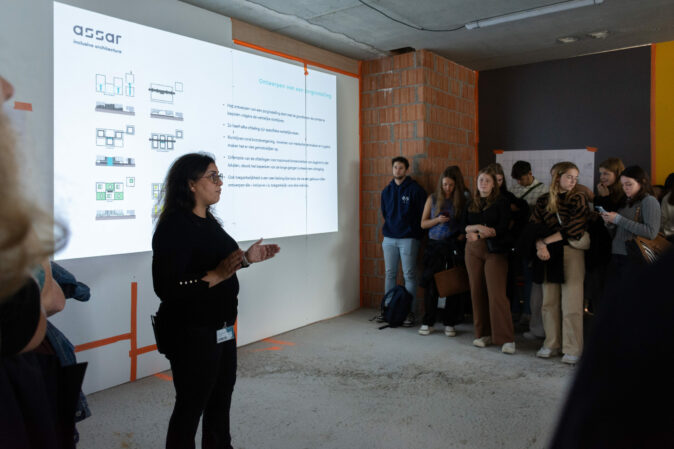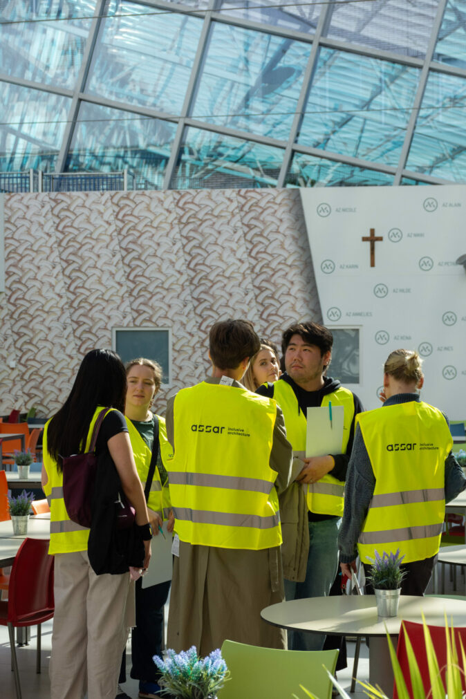Dans le cadre du cahier des charges de leur premier projet de jury, une ancienne élève de l’Université d’Anvers & spécialiste des projets de santé a animé un atelier sur l’accessibilité & l’environnement de guérison dans les projets hospitaliers d’assar. Les étudiants ont visité le site de la nouvelle aile E en cours de construction par WYCOR nv et quelques services hospitaliers rénovés. Cela a permis aux étudiants de mieux comprendre la construction & la rénovation hospitalière par eux-mêmes.