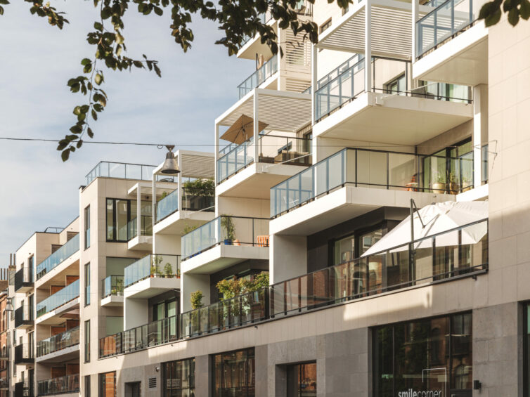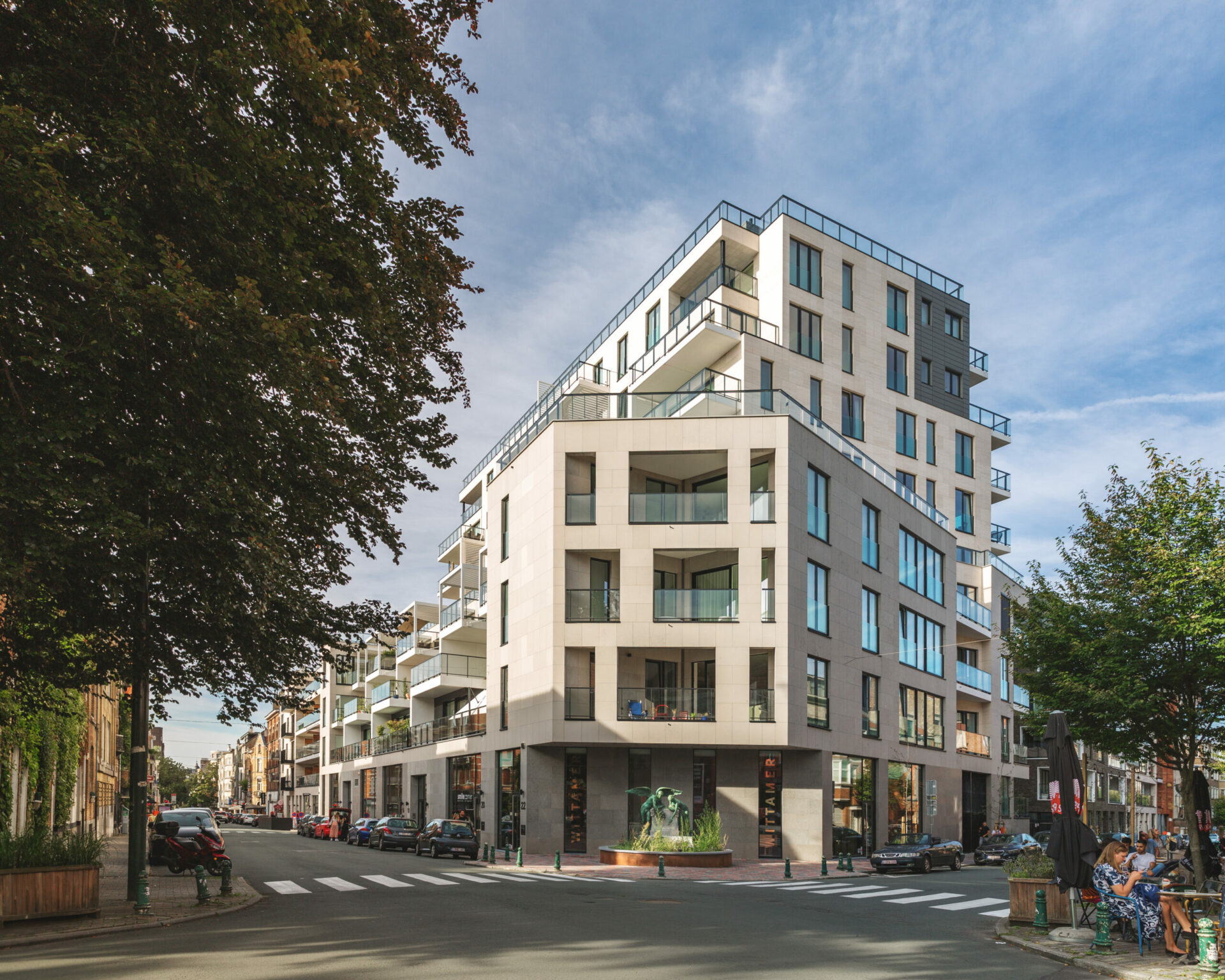 Cavell Court développe ainsi 19.000 m² de surfaces hors-sols dont 145 unités de logements et de circulation. Le programme maintient dès lors une mixité fonctionnelle composée de commerces (1.000 m²), de logements, d’un jardin et d’une polyclinique au cœur de la commune d’Uccle.