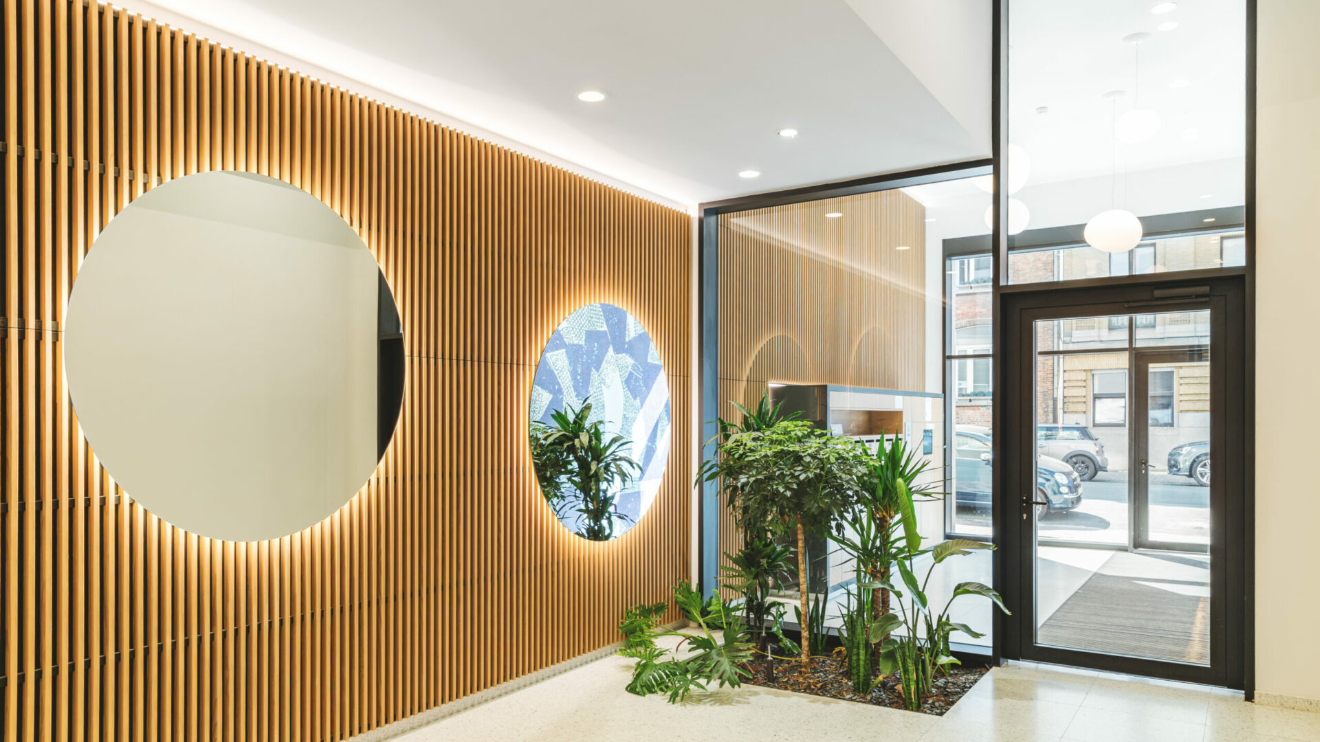 Rappel du passé hospitalier de ce lieu, une polyclinique (2.000 m² sur 4 niveaux) est maintenue sur le site. Son activité d’intérêt général participe à la mixité de l’ensemble.