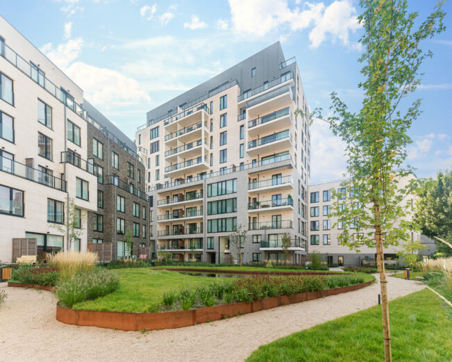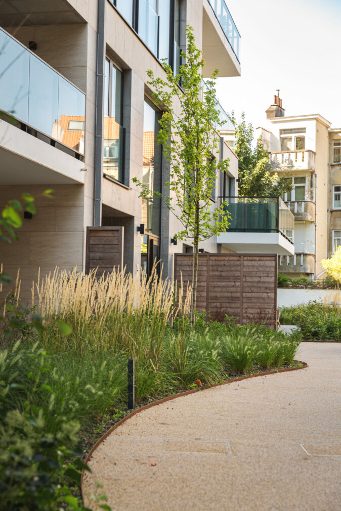 Un vaste jardin partagé de quelque 2.000 m² a été aménagé en intérieur d’îlot pour le plus grand plaisir des futurs habitants de Cavell Court. Le projet a l’ambition de créer un cadre de vie de grande qualité inspiré par ce quartier bien connu de la commune d’Uccle dans le sud de Bruxelles.