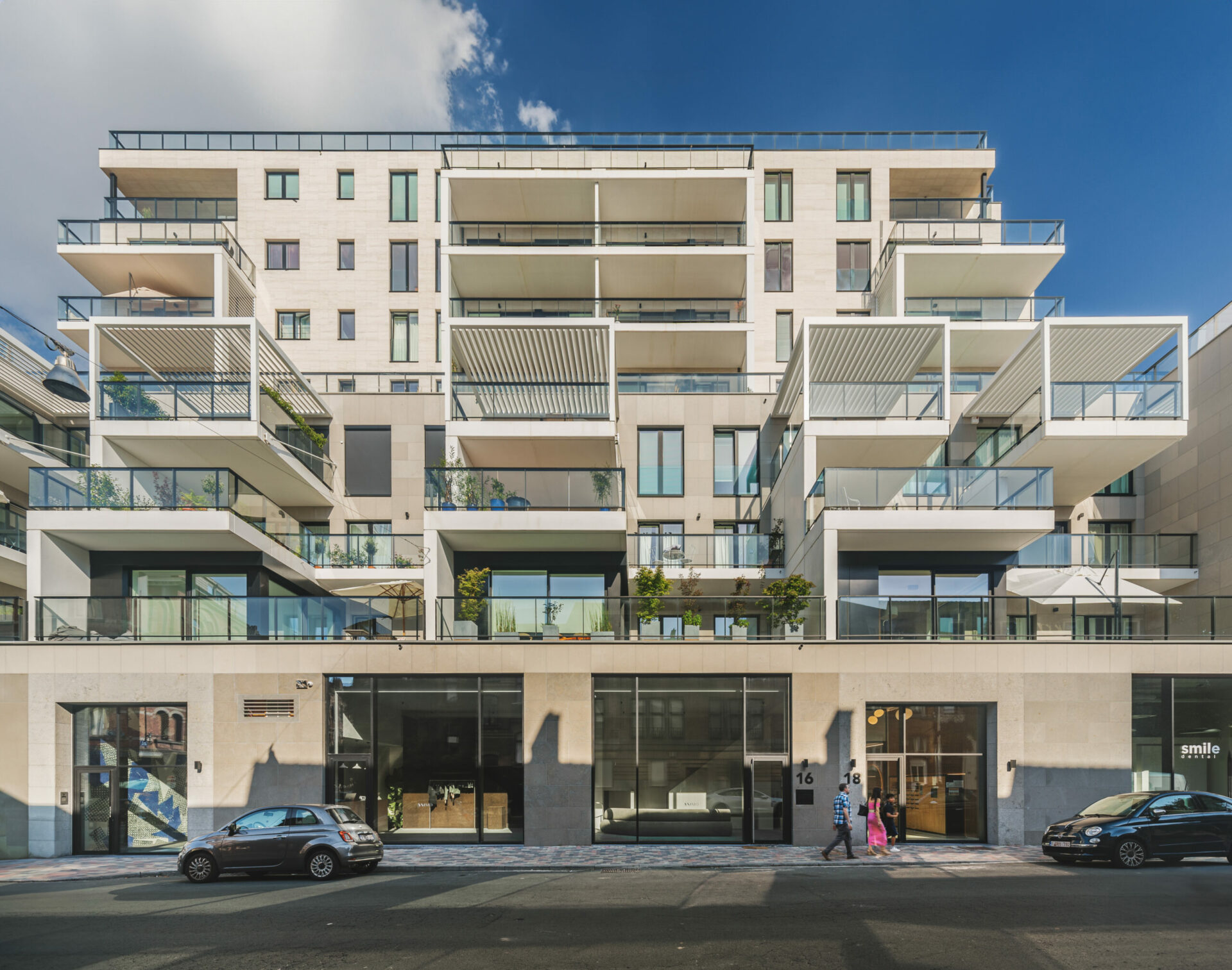 Côté rue Marie Depage, l’aile de l’ancienne clinique en brique rouge fut démolie et remplacée par 3 immeubles résidentiels mitoyens de 5 niveaux chacun et dont les derniers étages en retrait sont des appartements penthouses.