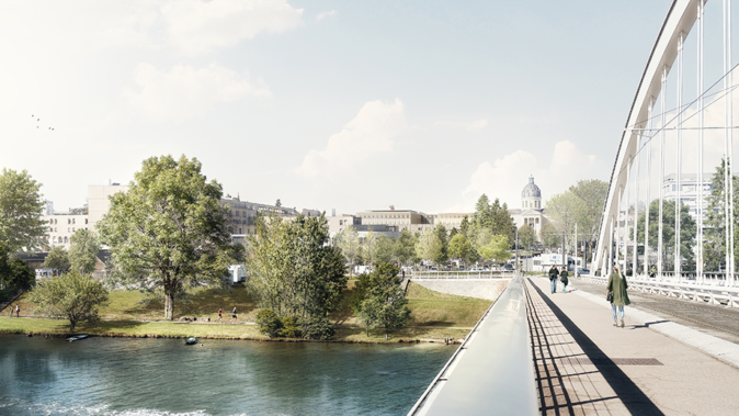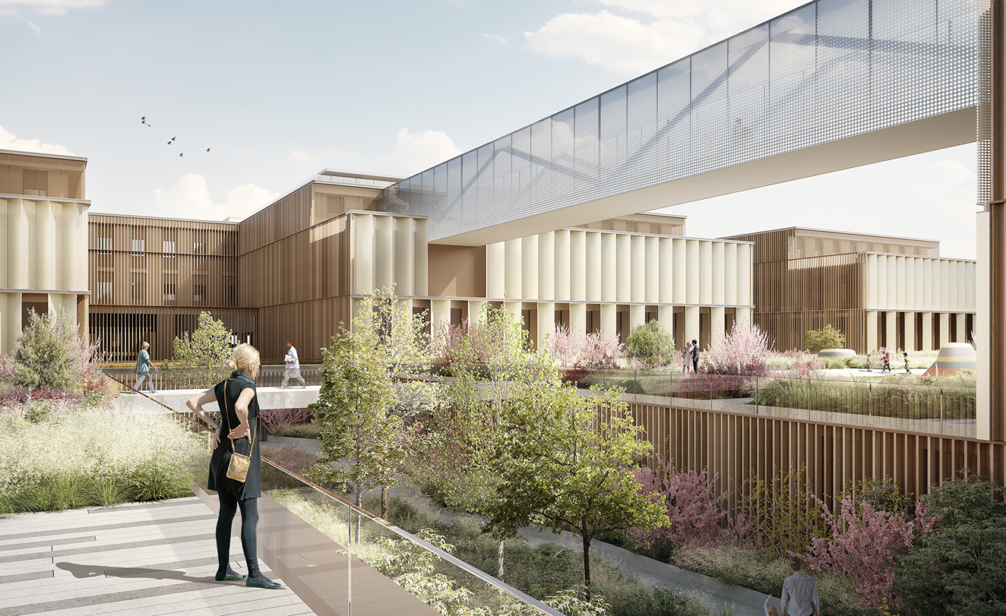 D’autre part, le parvis des Urgences côté sud compose une séquence urbaine et paysagée pour offrir une nouvelle façade de l’Hôpital accueillante, accessible et ouverte sur la ville. L’architecture de Convergences 1 confère une nouvelle identité au CHU coté sud, un bâtiment qui relie l’existant, installe un principe harmonieux, dans son contexte et pour le projet Convergence 2.