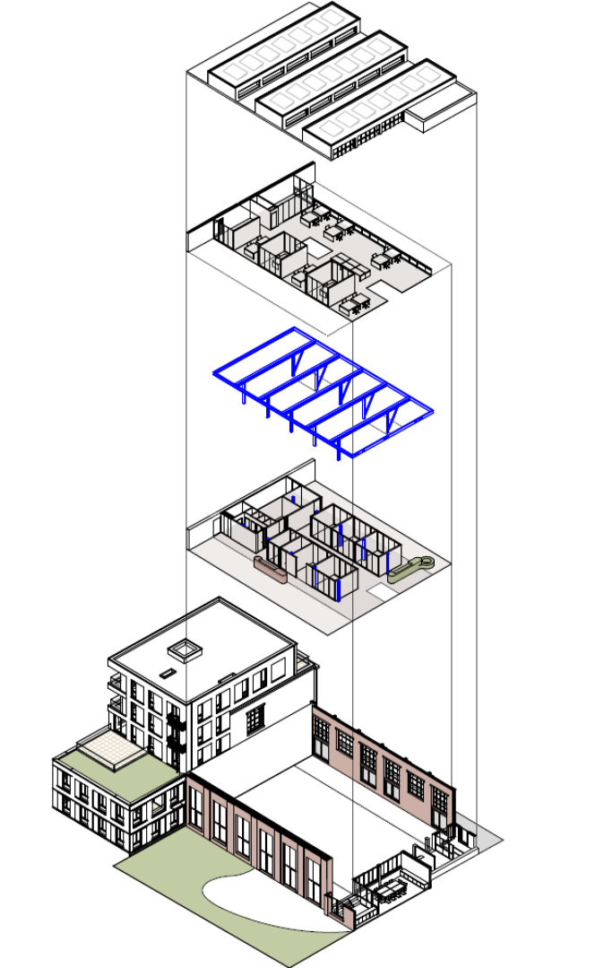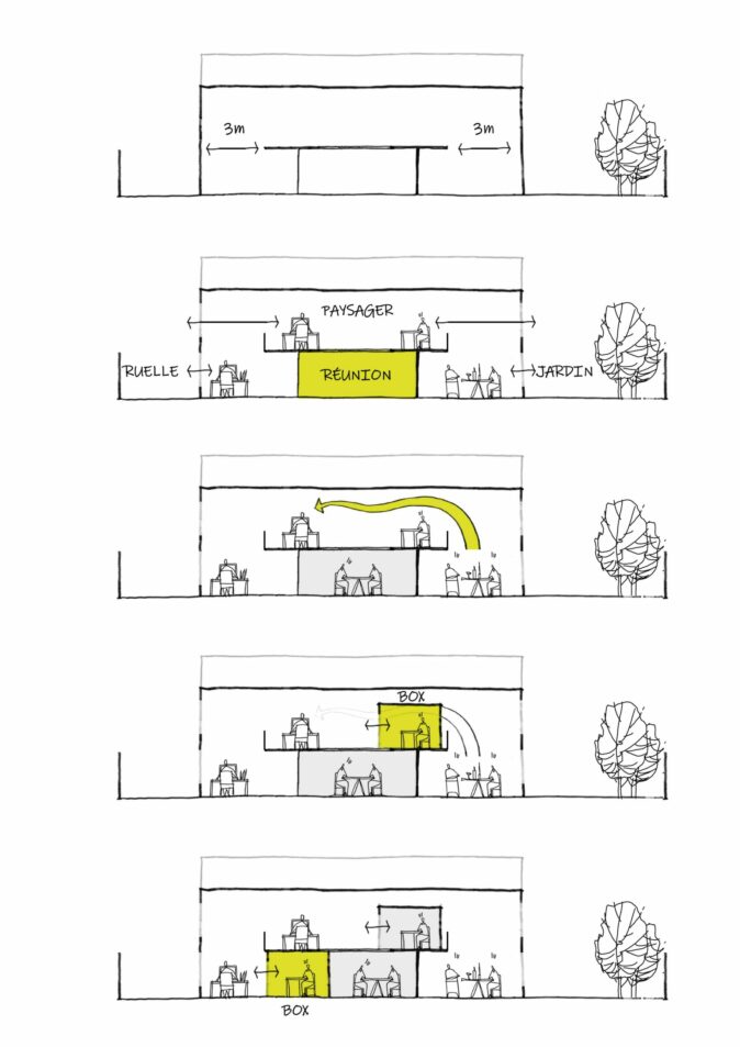 La combinaison de logements et de bureaux sur un même terrain permet une utilisation plus efficace de l’espace, notamment en partageant l’utilisation et l’entretien des espaces extérieurs avec les résidents locaux.