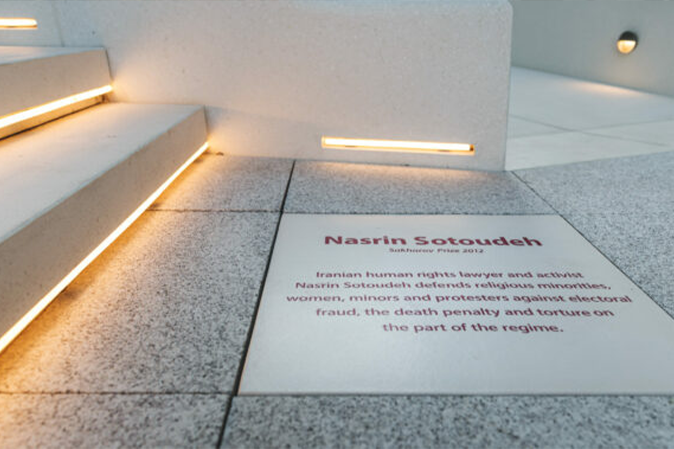 L’espace se veut commémoratif et hautement symbolique en mettant en avant les lauréats du prix Sakharov. Il est décerné par le Parlement européen pour saluer une action exceptionnelle en faveur des droits de l’homme. Actuellement, sur 47 carreaux de céramique sont inscrits les noms ainsi que quelques mots sur les personnalités qui ont reçu le prix. Le projet prévoit la possibilité de remplacer au fil de temps les dalles en granit par les dalles céramiques.