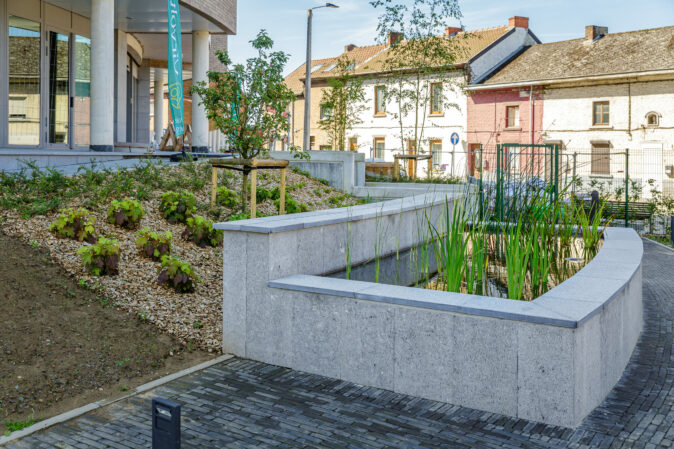 • l’accès au parking, à la zone de livraison ainsi que l’accès pour les services SIAMU sont localisés à l’opposé des abords, réservant à ceux-ci un usage piétonnier privilégié