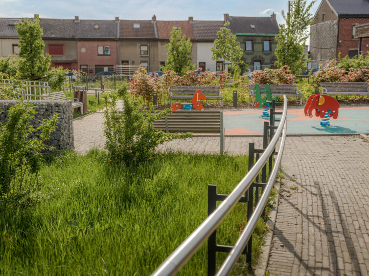 Le projet est conforme à la législation PMR en vigueur (CWATUPE Art 414 et 415). Les revêtements de sol seront réalisés avec un traitement antidérapant et de planéité adéquate. Des points de repos via des bancs ou banquettes, sont disposés régulièrement le long des cheminements piétonniers.
