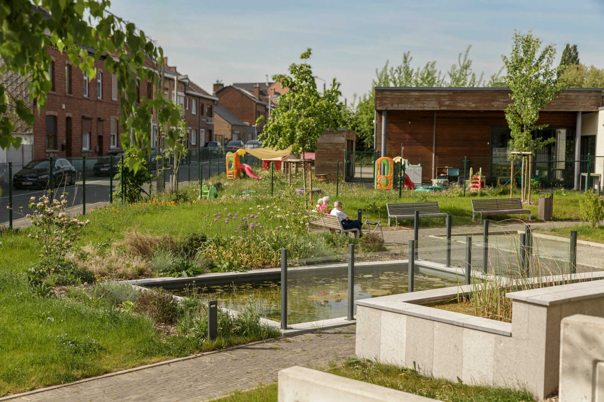 Le jardin se situe à l’interface entre la maison de repos, la crèche et le Cothan favorisant une mixité sociale et intergénérationnelle et sont accessibles via ces trois pôles.