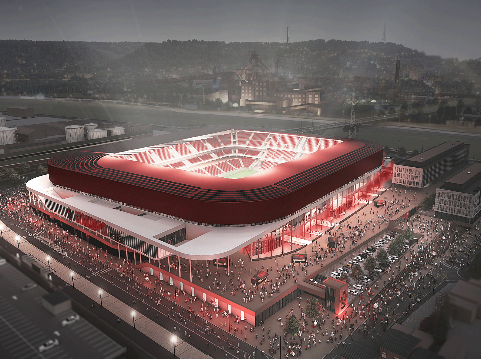 Ce projet est celui de la rénovation et de l’extension du stade de football du Standard de Liège (situé à Sclessin dans une zone marquée par le développement industriel) ainsi que de l’aménagement d’une esplanade semi-publique. Le programme inclut également des fonctions supplémentaires dont trois immeubles de bureaux, des espaces de commerces et de loisirs, un fitness ainsi qu’une crèche.
