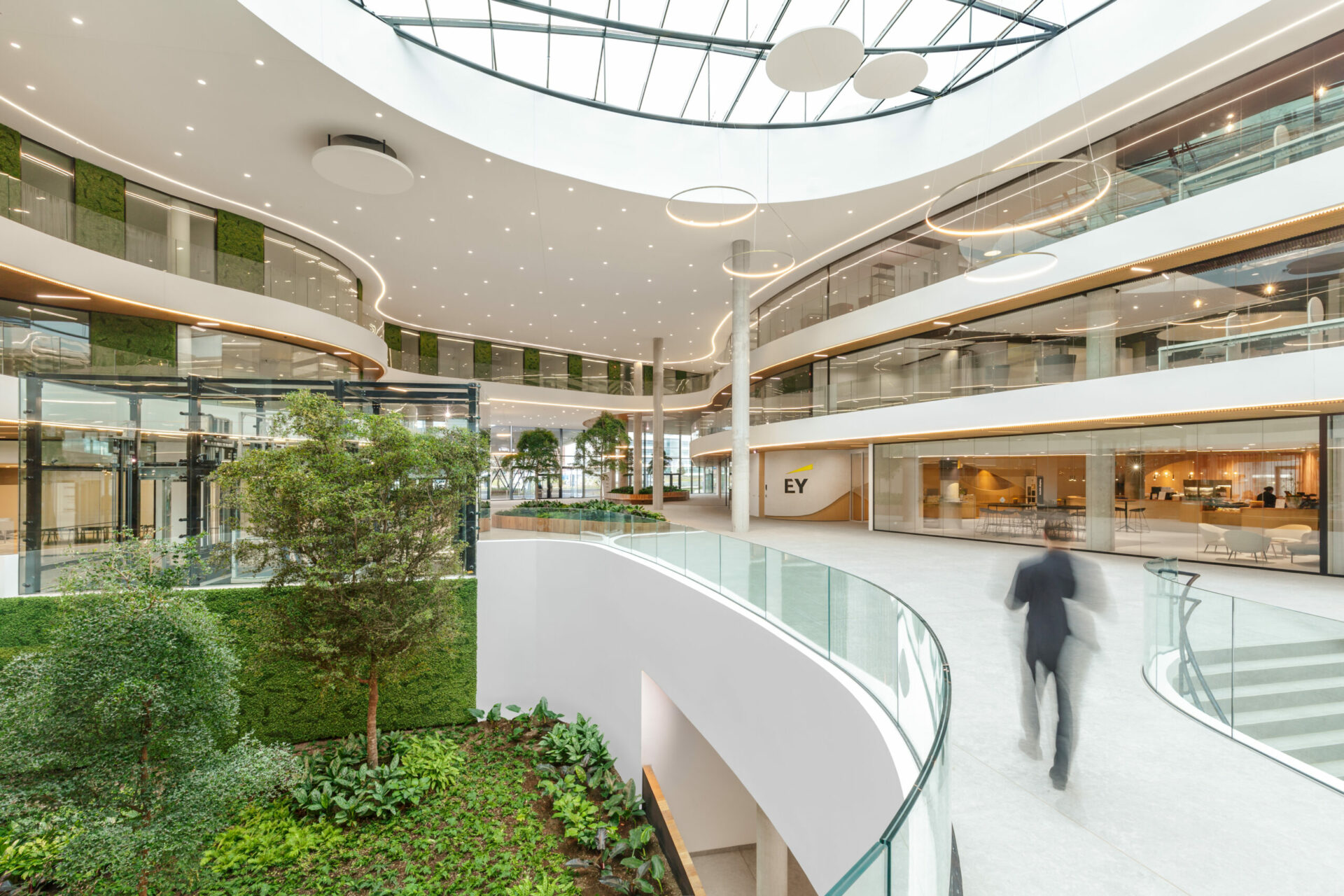 Le bâtiment, livré début 2024, comprend 50.000 m² de bureaux de qualité, un hôtel de luxe avec 250 chambres, un centre de fitness, des restaurants, un espace de coworking international pour les expatriés et un grand atrium. EY Belgium a installé son nouveau siège social, comprenant un centre d’affaires et un restaurant d’entreprise. En sous-sol, on trouve également 1.157 places de parking réparties sur 3 niveaux.