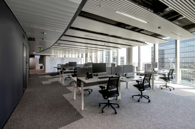 Ce découpage volumétrique a permis également de concevoir, tout en respectant les normes « incendie » très contraignantes des bâtiments hauts, des espaces d’une souplesse jamais atteinte, permettant une très grande flexibilité des aménagements propres à toute organisation et offrant un ratio d’une performance rare entre surface privative (ou utile) et surface commune (ou servante).