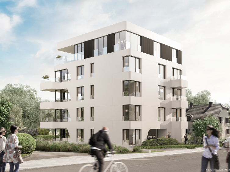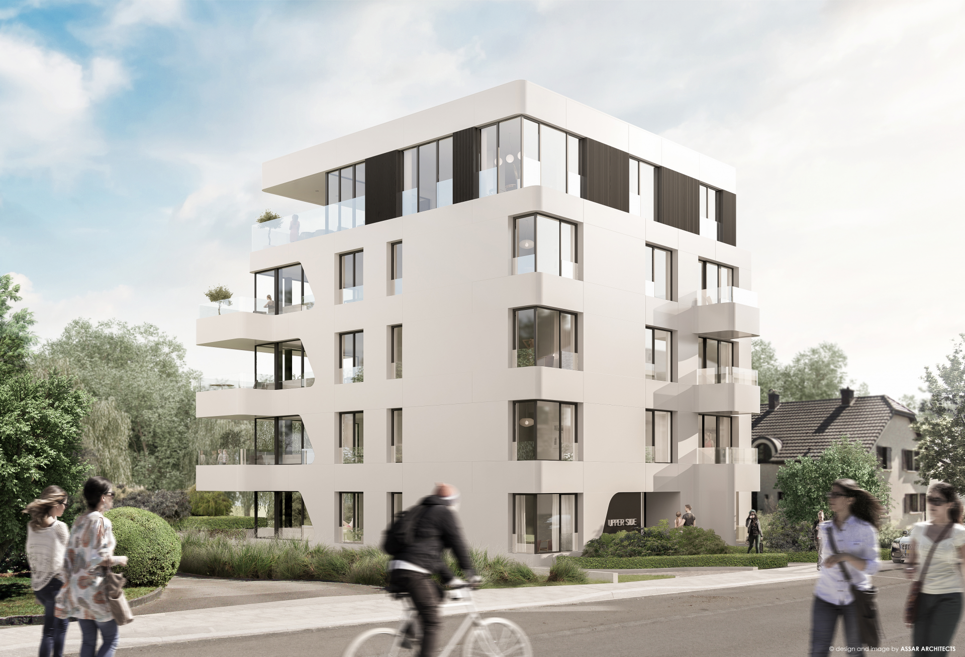 Situé au Luxembourg dans le quartier résidentiel de Weimershof, au sud-est du Kirchberg, à quelques pas de la place bancaire et financière internationale et du siège des institutions européennes, Upperside est un développement résidentiel de 1.000 m² initié par le développeur Eaglestone. Immeuble de 3 façades, il dispose de 9 appartements de haut standing répartis sur 4 étages.
