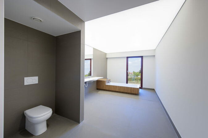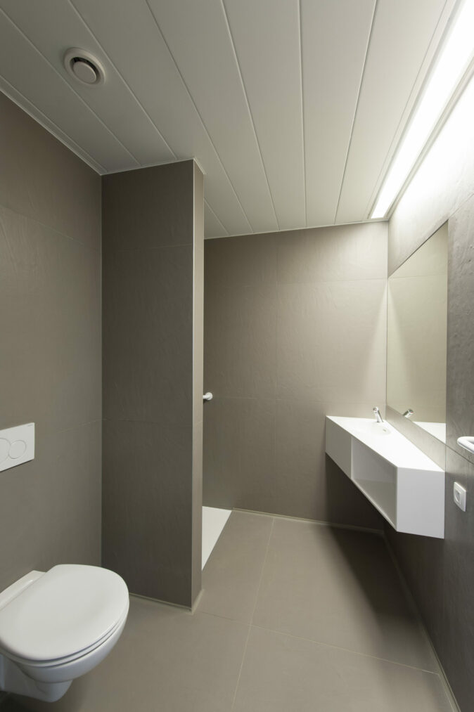 Compte tenu de la sensibilité aux stimuli souvent forte des résidents, une grande attention a été portée au concept acoustique. C’est pourquoi les logements individuels sont complètement isolés acoustiquement les uns des autres et les murs sont en brique silicocalcaire. La séparation acoustique a également été étendue à l’installation technique : la ventilation est strictement séparée d’un logement individuel à l’autre. La finition des murs et des sols dans les salles de bains est comparable, avec ses carreaux de céramique de grand format. En effet, de petits carreaux pourraient amener certains résidents à se focaliser dessus et à les compter régulièrement.