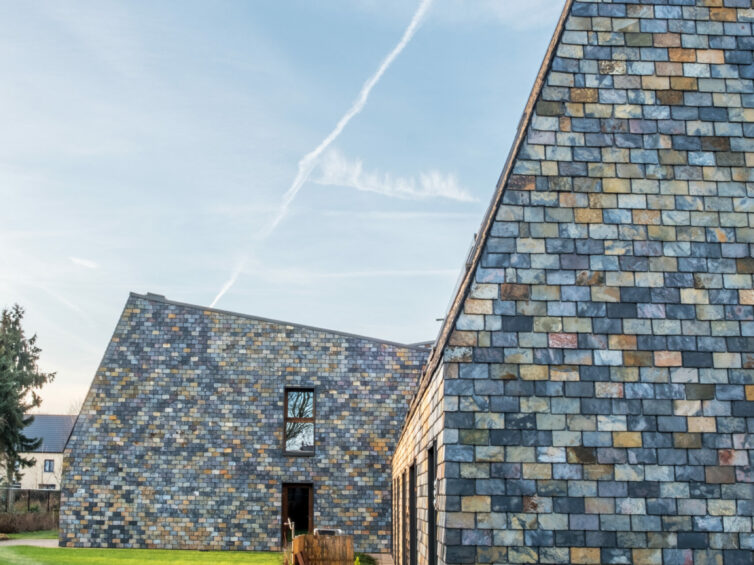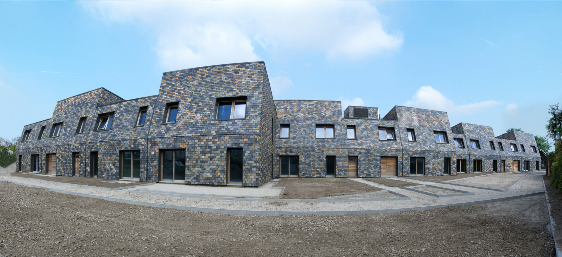 La durabilité se traduit également dans le langage des formes. Les logements se caractérisent par une interprétation contemporaine d’un design reconnaissable, dont le logement traditionnel à toit en pente constitue le fondement. Il en résulte une série de logements individuels présentant manifestement les caractéristiques de maisons, mais qui sont néanmoins perçus comme une seule unité. Ce langage des formes, associé à l’application créative sur la façade d’un matériau durable comme l’ardoise naturelle, garantit que le bâtiment conservera son intérêt architectural à l’avenir.