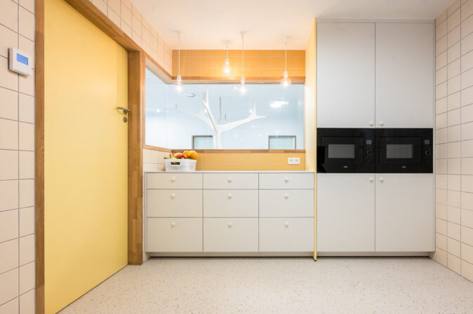 La crèche est structurée en trois groupes de vie distincts, offrant une capacité d’accueil totale de 54 bébés & tout-petits. Deux de ces groupes sont gérés directement par la ville de Kortrijk, tandis que le troisième est destiné à des accueillants familiaux. Chaque groupe de vie est autonome, disposant de sa propre cuisine, d’une salle de soins & de suffisamment de couchages pour les enfants. Cette organisation permet une prise en charge individualisée et attentive, tout en garantissant le confort & la sécurité de chaque enfant.